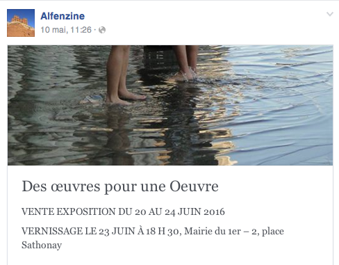 20 au 24 JUIN 2016 : MAIRIE LYON1 exposition collective « Une œuvre pour une œuvre http://www.alfenzine.com/